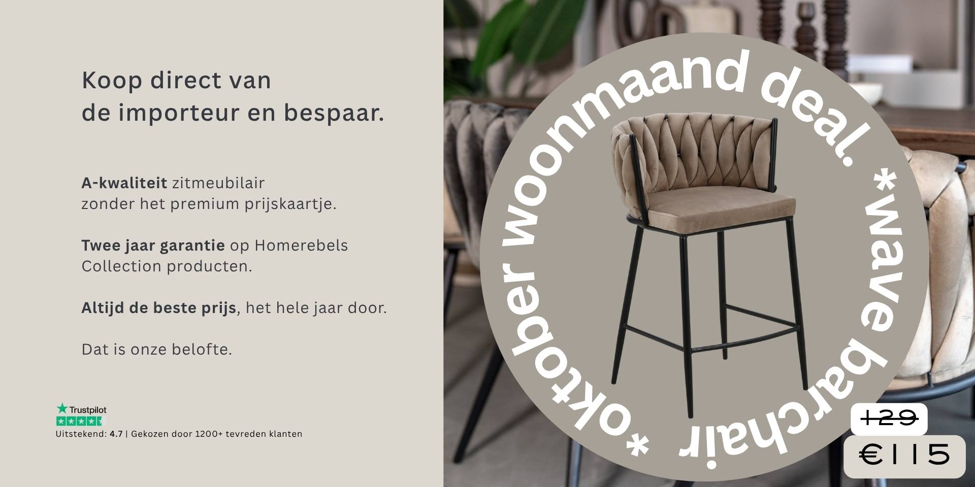 Om dit te kunnen realiseren importeren we onze eigen artikelen en bouwen we het Homerebels merk verder uit. Dit is onze rebelse aanpak: stijl en kwaliteit samenbrengen voor een eerlijke prijs.