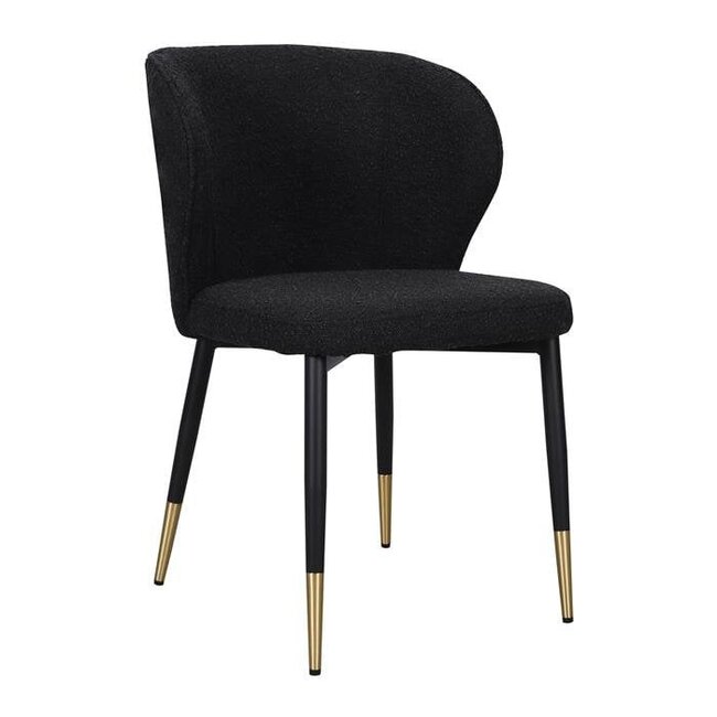 Ontdek de Giorgio eetkamerstoel – een perfecte mix van modern design en luxueus comfort. Deze stijlvolle stoel heeft matzwarte metalen poten met glanzende goudkleurige uiteinden, wat direct een chique uitstraling geeft.
